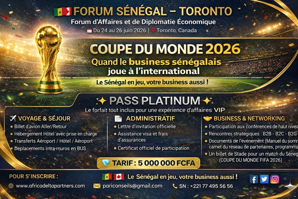 Le Forum d’Affaires et de Diplomatie Sénégal–Canada 2026, organisé du 24 au 26 juin à Toronto, vise à renforcer les partenariats économiques, diplomatiques et institutionnels entre le Sénégal, l’Afrique de l’Ouest et l’Amérique du Nord.