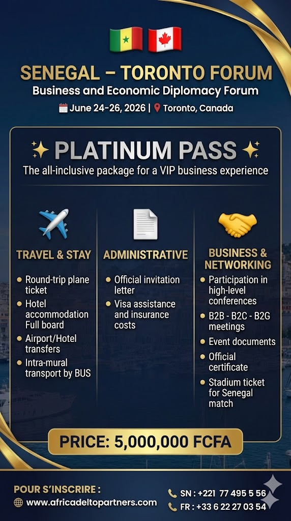 The Senegal–Canada Business and Diplomacy Forum 2026, to be held from June 24 to 26 in Toronto, aims to strengthen economic, diplomatic, and institutional partnerships between Senegal, West Africa, and North America.